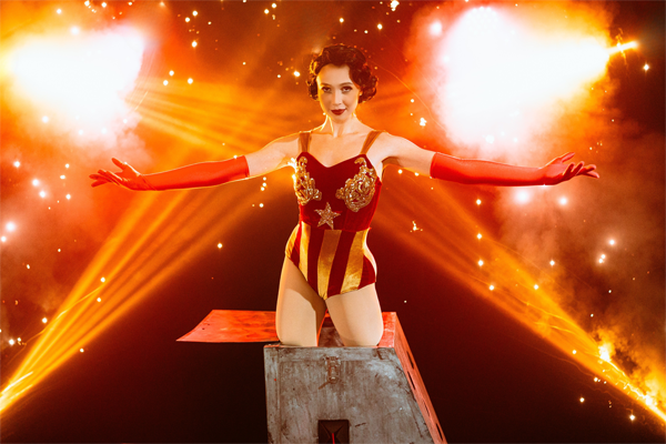 Durante a apresentação, as várias assistentes de palco nos presenteiam com uma coreografia digna dos melhores espetáculos do gênero, sempre trajando figurinos que representam a época retratada naquele momento da apresentação.