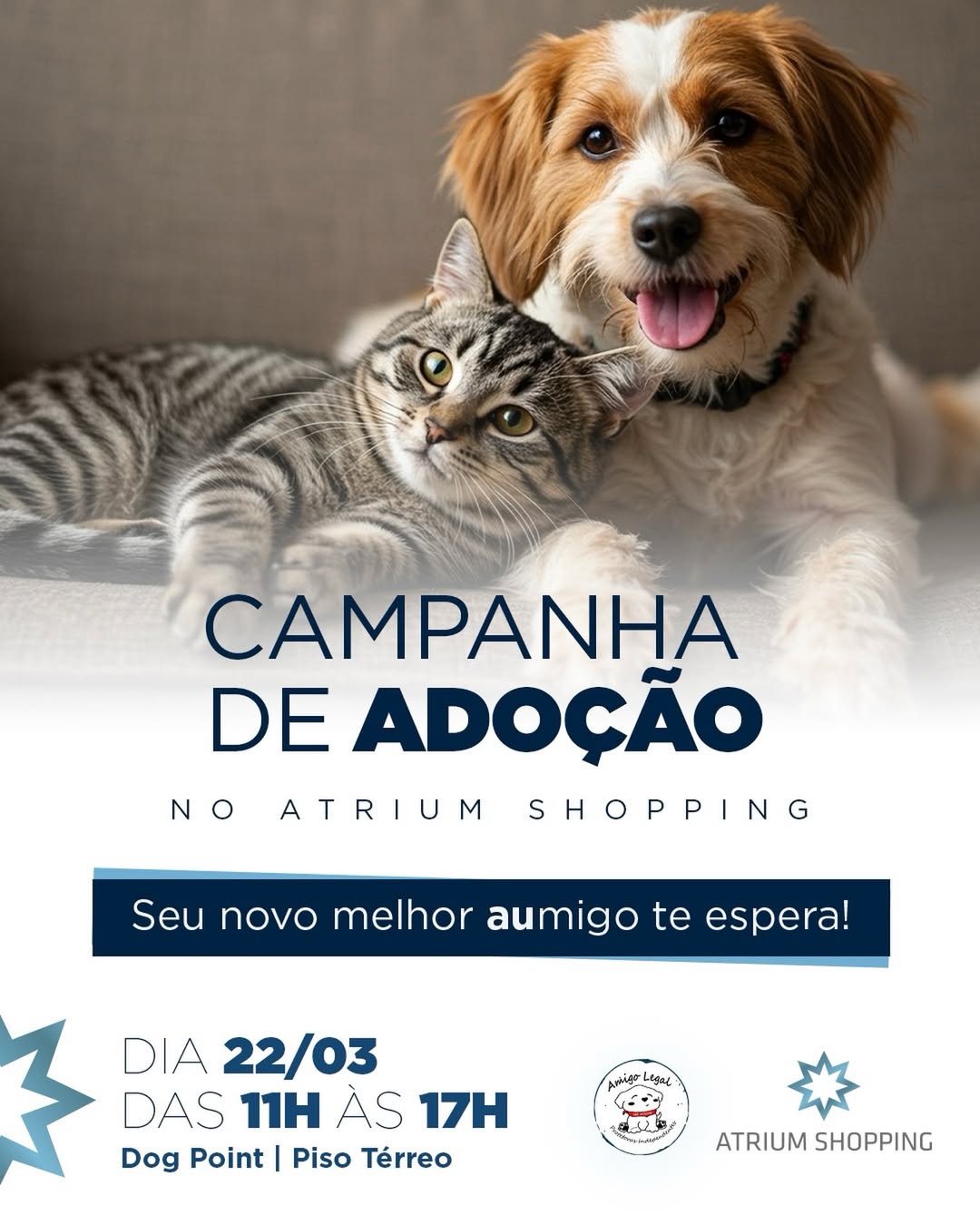 No domingo (22), das 11h às 17h, o espaço Dog Point será palco de uma Ação Especial de Adoção Pet. A iniciativa reúne cães e gatos que aguardam por um novo lar e busca incentivar a adoção responsável, aproximando os visitantes de histórias que podem ganhar um novo começo.