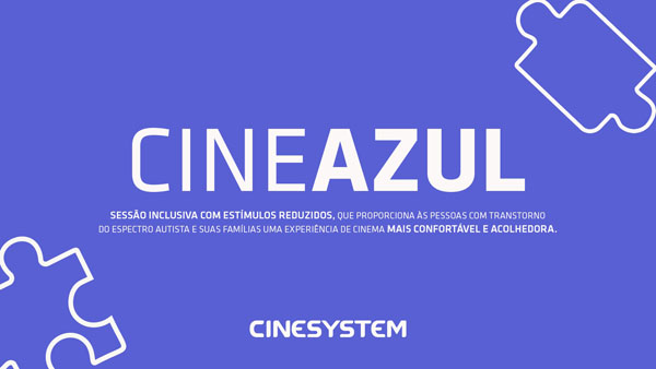Criado em 2019, o Cine Azul teve início em seis unidades e, atualmente, está presente nos 28 cinemas da Cinesystem em todo o Brasil. As sessões são adaptadas para proporcionar mais conforto ao público, com som reduzido, luz ambiente parcialmente acesa e liberdade de movimentação durante a exibição.