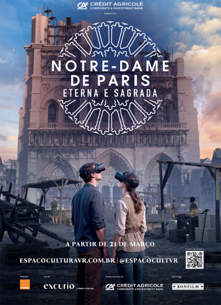 “Notre-Dame de Paris – Sagrada e Eterna” é uma criação da Excurio, apresentada no Brasil pelo banco francês Crédit Agricole e realizada pela produtora Bonfilm. Ela é exibida no Centro Cultural CNP de Realidade Virtual, cujos patrocinadores principais são CNP Seguros Holding Brasil, Crédit Agricole, Essilor/Luxottica (Varilux), além do Ministério da Cultura a traves da Lei Rouanet e do Governo do Estado de São Paulo – Secretaria de Cultura, Economia e indústria criativa – lei do PROAC-SP. Outros parceiros importantes são Air France (transportadora oficial), Grupo Accor e Indigo. O evento tem o apoio institucional da Embaixada da França no Brasil.
