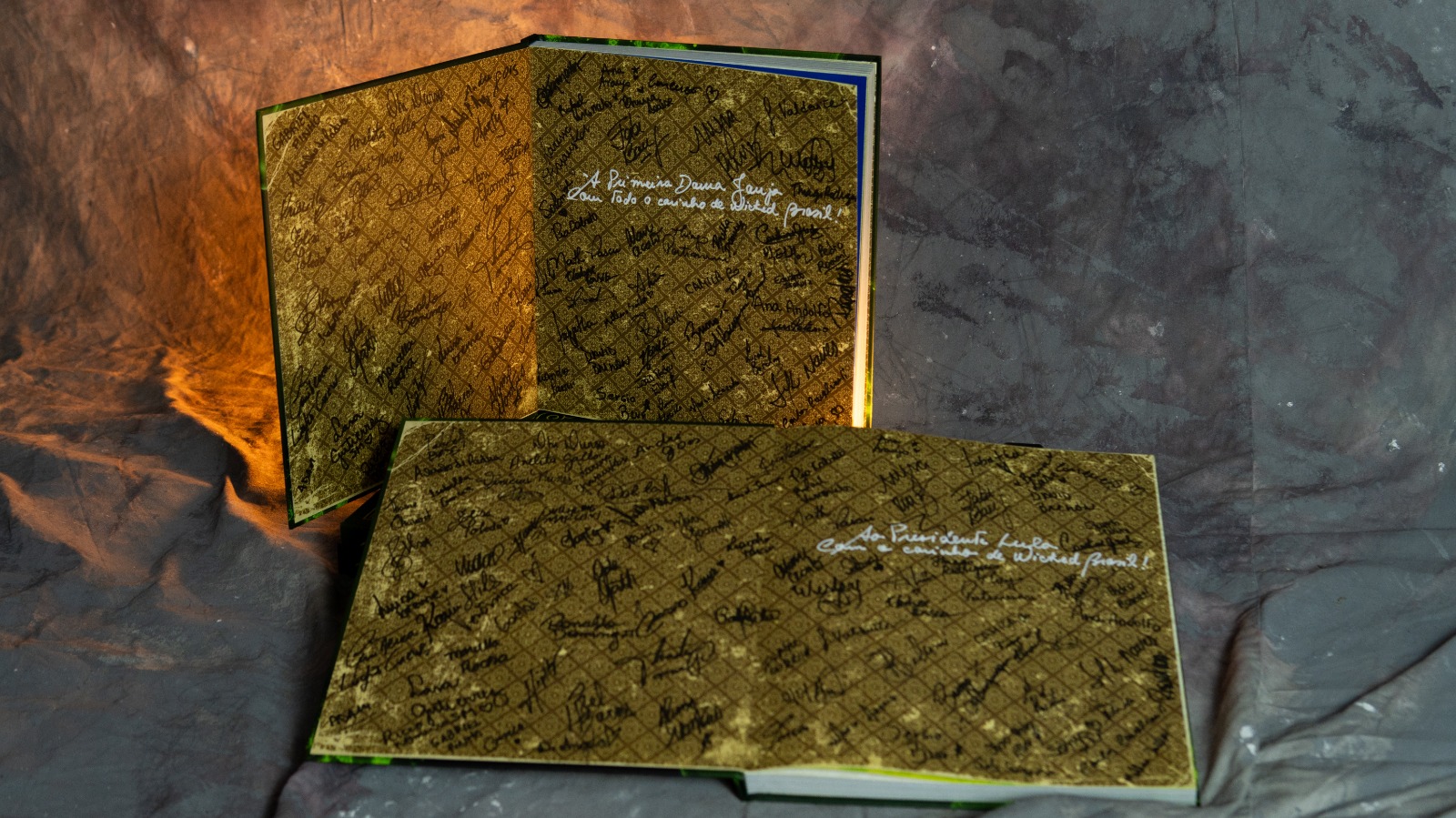 Ao final do espetáculo, Janja interagiu com o elenco e recebeu o livro de fotos de “Wicked”autografado pela companhia (atores, músicos e técnicos), assim como um exemplar dedicado ao presidente Lula.