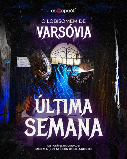 Quem procura por uma aventura que com pitadas de mistério, ainda pode aproveitar a sala “O Lobisomem de Varsóvia”, que segue disponível na unidade Moema (SP) do Escape 60’, somente até o dia 03 de agosto. Depois disso, será tarde demais…