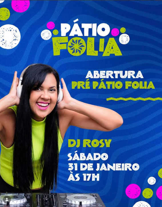 A abertura do Pátio Folia acontece no sábado, 31 de janeiro, com apresentação da DJ Rose, das 17h às 18h30. O shopping center também promove um Workshop de Maquiagem, com dicas práticas para produções coloridas e vibrantes.