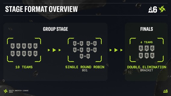 FURIA, w7m Esports, FaZe Clan, Team Liquid, LOUD, Black Dragons, Ninjas in Pyjamas, LOS e ENX representam o Brasil na liga regional, enquanto a 9z Team vem da Argentina para disputar o título.